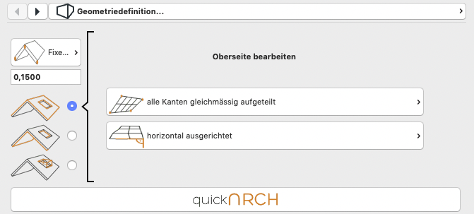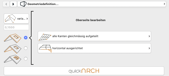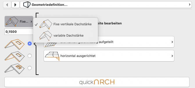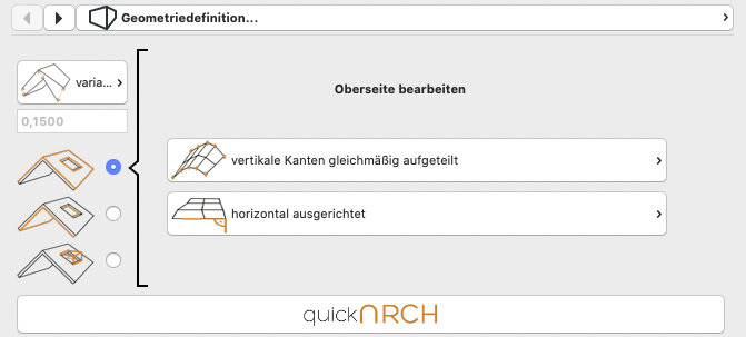 - Whether the roof has a fixed vertical thickness or whether the roof sides should be able to be processable independently of each other.