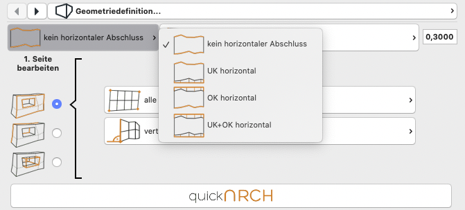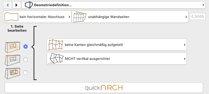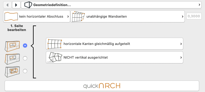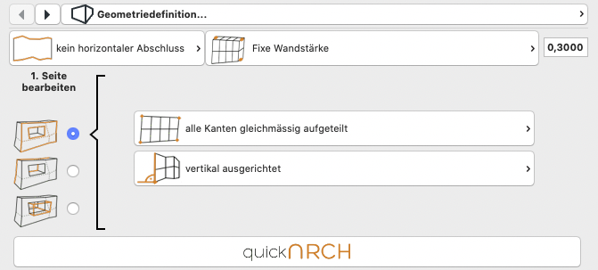 Tapered, inclined or even set and deformed walls can be quickly modelled with the help of the quickArch Wall.