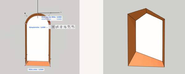 - Whether the arch shapes on the front and back of the opening / niche are identical or a transition between different arch shapes is possible.