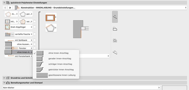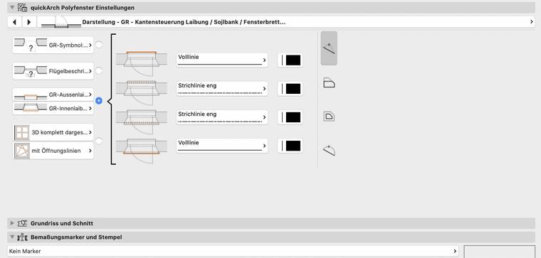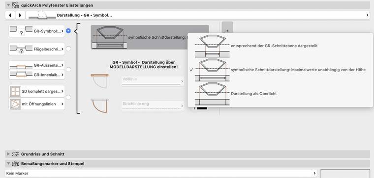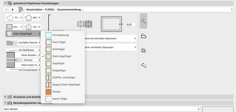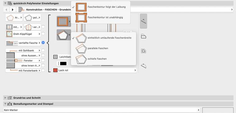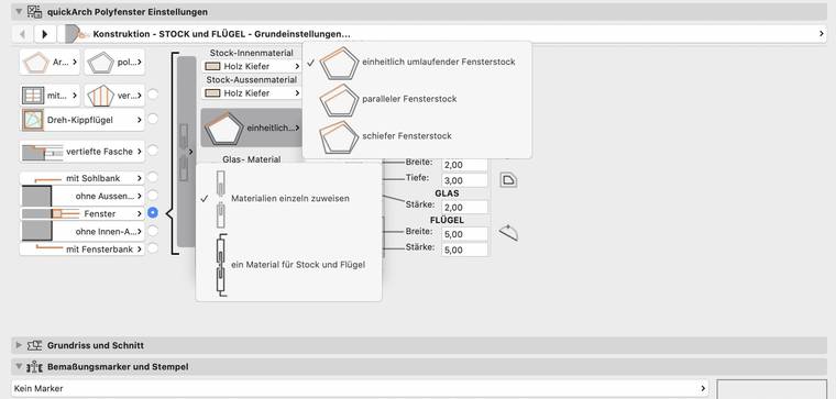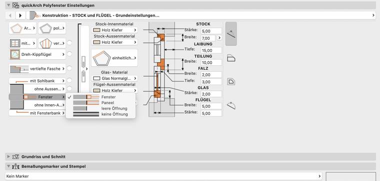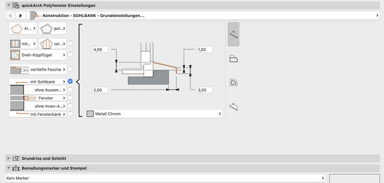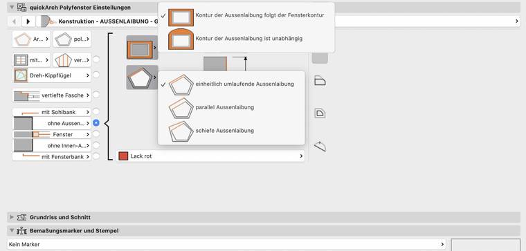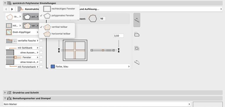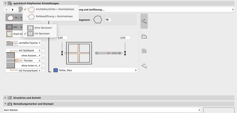 Due to the increased complexity of the quickArch Polywindow, the user interface was also reorganised from scratch in order to present the many setting options as clearly as possible: